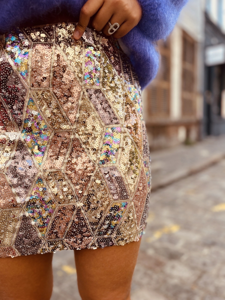 - Jupe courte brillante